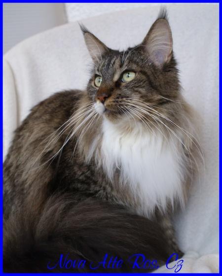 Její název PRINCES STAR, CZ byl vybrán po našem prvním mainském mývalím kocourkovi, který nás bohužel předčasně opustil. Jmenoval se IVANHOE OF GENTLE LIONS, CZ - domácky Princ, Princátko.