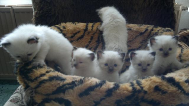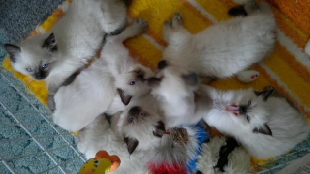 O plemeni:Ragdoll je velká a těžká kočka, proslulá zejména svou klidnou povahou. Má polodlouhou srst jemné struktury, která se tolik neplstí jako ostatním dlouhosrstým kočkám. Ragdoll jsou zásadně kočky s odznaky, které se rodí bílé. Barvy a odznaky se vyvíjejí pomalu, často až dva roky. Ragdollky jsou nejklidnější a nejmazlivější plemeno. Neškrábou, nesyčí, nekoušou a jsou velice mazlivé. Samozřejmě když přijdou s kvalitního prostředí kde se o něj majitel stará s láskou a péčí a mazlí se s nimi Ragdollky se doporučují k dětem a starším lidem, protože jsou velice trpělivé. Říká se jim kočkopes, ale výhoda je v tom, že se nemusí venčit a doma jsou velice čistotné. jsou dobře osvalněné a hmotností předstihují další plemena koček, ale je to plemeno velmi DOBROMYSLNÉ. Snadno se vycvičí pomocí odměny a rychle pochopí zásady čistotnosti. Jen je důležité pořizovat si pravé RAGDOLLKY.