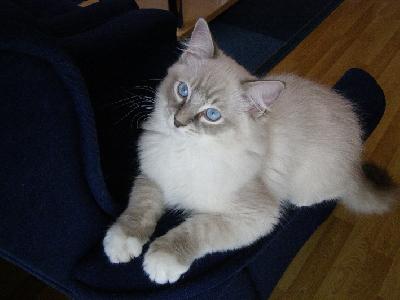 O plemeni:Ragdoll je kočička s krásně jemnou srstí která se neplstí, nádherně modrýma očima a úžasnou klidnou a milou povahou.
