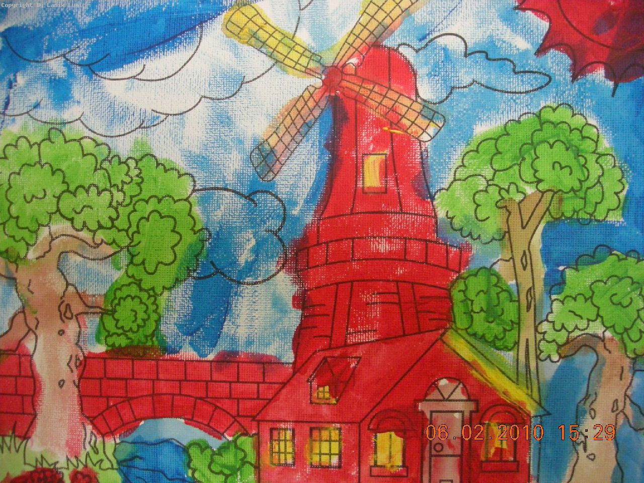 Název snímku:větrný mlýn / malba vnučky 7 let